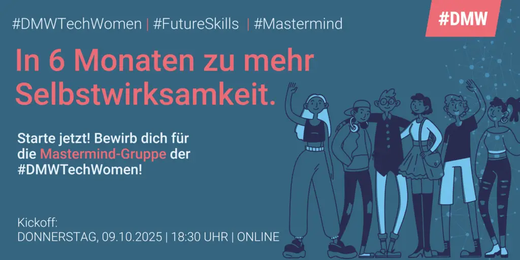 Event Category: Click to Register: https://www.eventbrite.de/e/mastermind-kickoff-use-the-force-in-6-monaten-zu-mehr-selbtwirksamkeit-tickets-1752968508999In diesem Jahr starten wir im TechWomen-Team mit einer exklusive DMW Mastermind-Gruppe zum Thema „Selbstwirksamkeit“. Wir laden DICH herzlich ein, bei diesem Kickoff-Event mehr über das Thema zu erfahren – und dich danach für die Mastermind-Gruppe zu bewerben.
